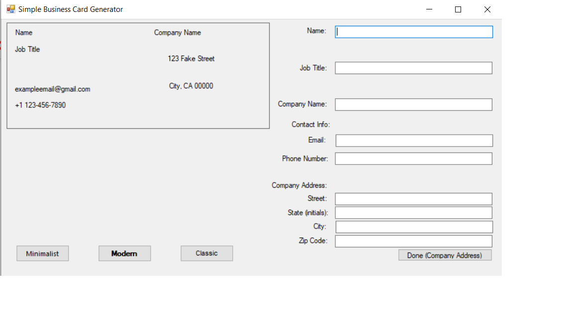 Simple Business Card Generator9/16/2024In this project, we learned how to code and change labels. We also learned how to use Textboxes. |