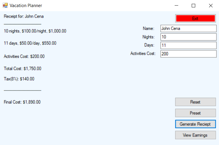 Vacation Planner9/23/2024In this project we learned how to use error handling, as well as starting to use equations in the code. |